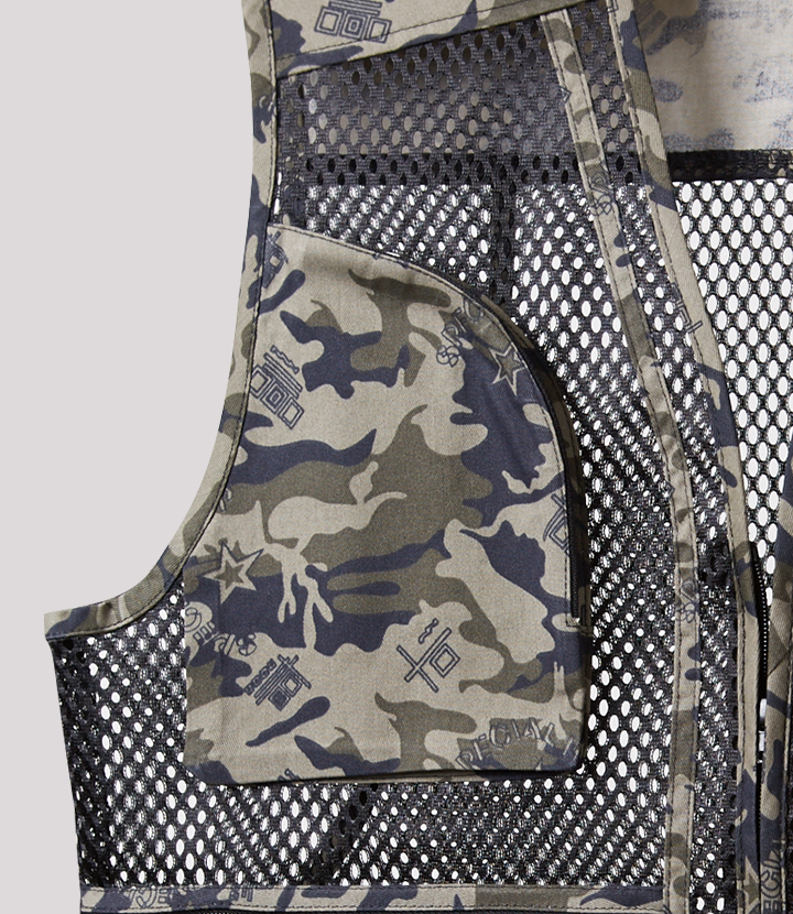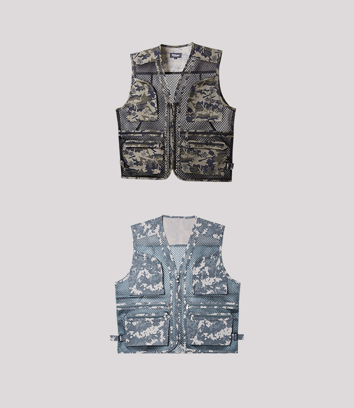 앞판 / 뒷판에 메쉬원단을 사용하여 통기성이 뛰어난 작업용 조끼.